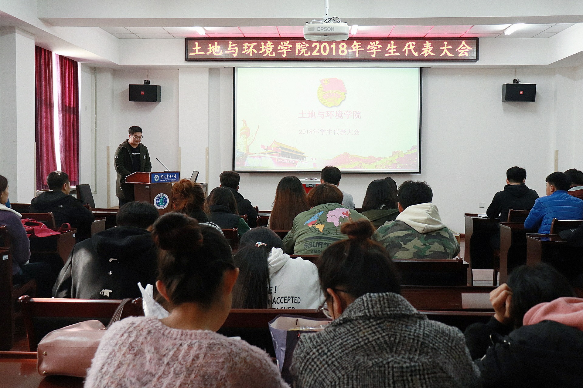 2018年11月9日,黄色直播 2018年学生代表大会在新土楼102正式召开。本次会议共有来自各班级学生代表75人参加。