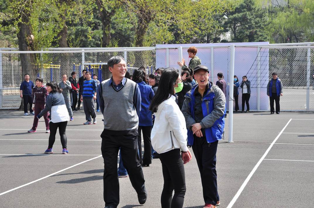 午后的排球场人头攒动,有热情饱满的参赛队员,也有积极呐喊的教工啦啦队,欢声笑语不时引来路过的老师和同学们驻足观看。随着一声声哨响,昔日在教学和科研岗位默默工作的老师们开始了龙争虎斗,各自施展排球绝技,有精彩的拦网和扣球,也有队员们一个又一个完美的配合。每个球队都适时换人,让更多的老师有了上场参与比赛的机会。实力相当的双方进行比赛时,比分胶着的情况牵动着场下的每一个观众。落后的队伍也毫不逊色,不断地调整自己的战略战术,为了搬回比分,显示出了永不放弃的精神。排球比赛过程中,学院领导及教授们也悉数登场献技,使得赛场气氛热情高涨。