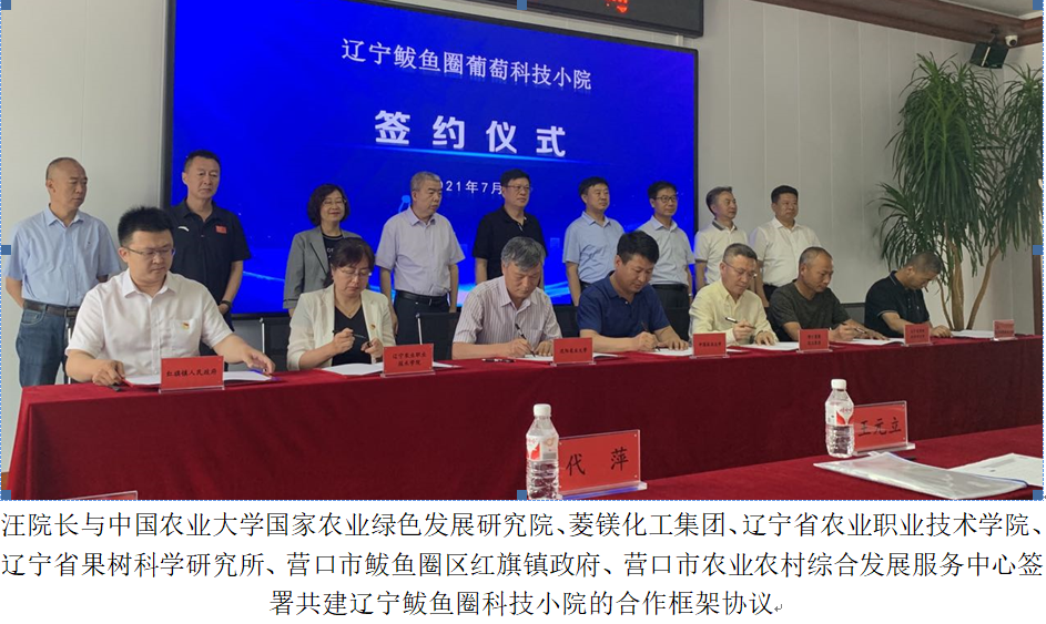 、营口菱镁化工集团有限公司、辽宁农业职业技术学院、辽宁省果树科学研究所、营口市鲅鱼圈区红旗镇、营口市农业农村综合发展服务中心共7个合作单位共同组织,组建葡萄科技小院专家团队,入驻鲅鱼圈红旗镇,我校常驻人员将重点针对葡萄生产中存在的营养失衡及其品质下降等问题,开展土肥需求和果园土壤健康、镁肥营养与调控机制、配方施肥等方面的研究和技术服务。科技小院将作为农业资源与环境学科专业硕士实训基地、农民田间学校和科技大讲堂,广泛开展教学、科研和乡村振兴工作,同时定期为“营口红旗镇绿色生态葡萄产业融合发展示范园”提供技术咨询,为我省加快实施乡村振兴战略提供科技和人才支撑。