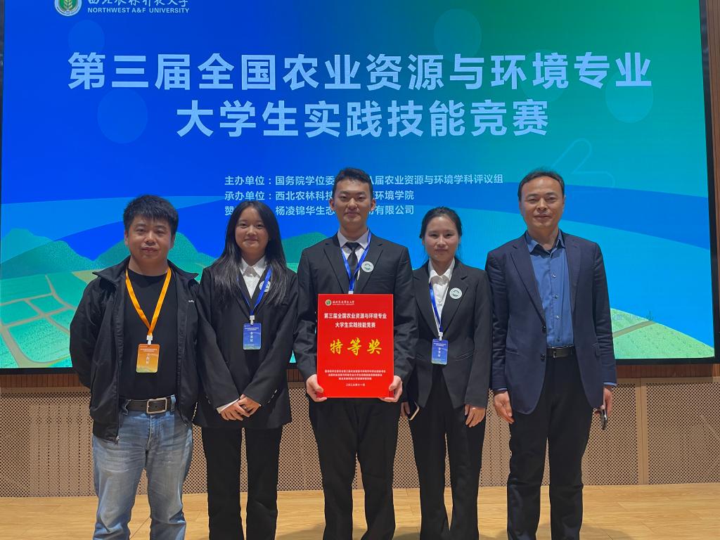 青年教师徐英德指导,农业资源与环境专业的葛铮铎、赵莹、冯晓菲三名本科生组成的参赛队伍经过墙报制作、实验技能考核和汇报答辩三个环节的激烈角逐,最终斩获特等奖。