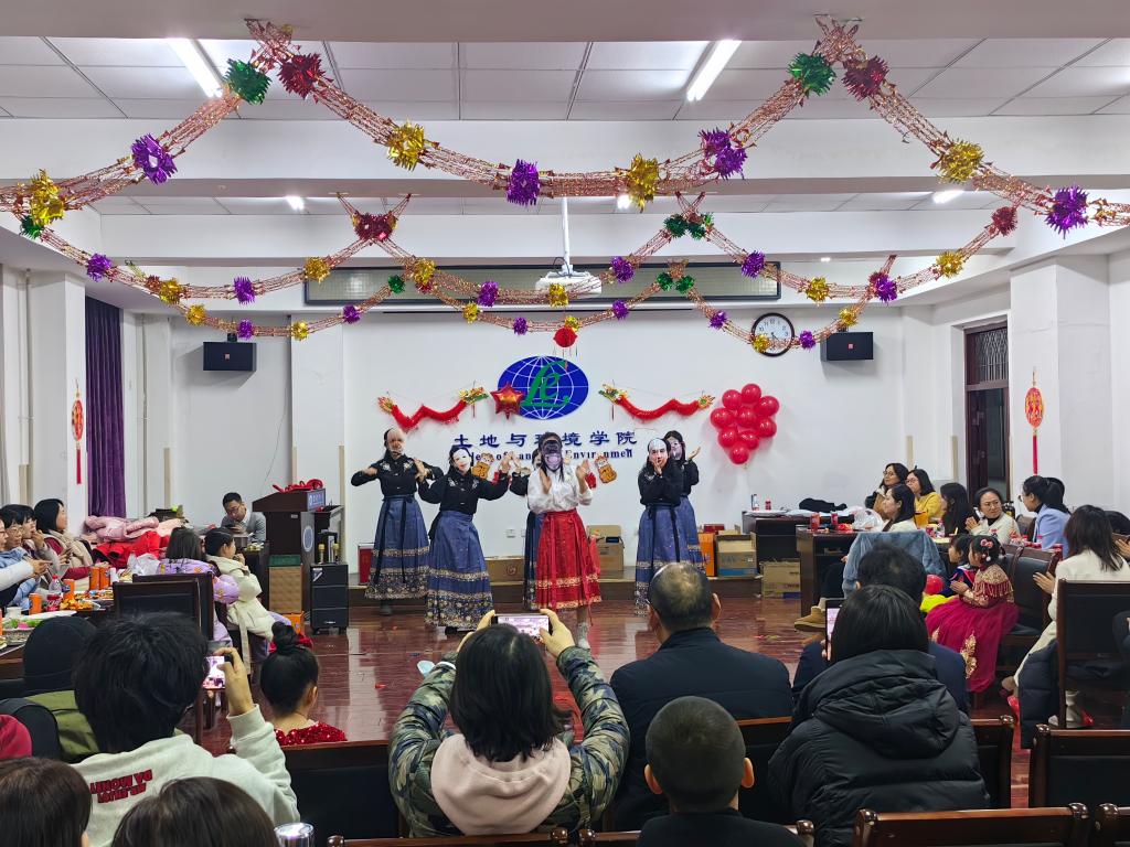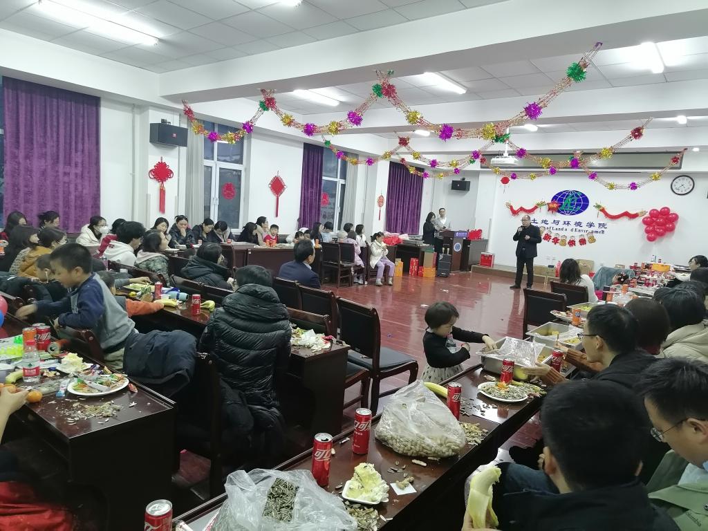 总结汇报后全院教师们一起煮饺子、话新年联欢活动。党委书记陈志刚发表热情洋溢的新年致辞,院长邹洪涛教授为大家切开新年蛋糕,副院长裴久渤倾情演唱《我的中国心》、工会委员们三句半《赞土环》、青年教师舞蹈《一笑江湖》、李嘉琦萨克斯独奏《万水千山总是情》、韩琳携女儿共同演唱《最好的未来》等节目精彩纷呈。学生代表的街舞《LockingFreestyleSolo》、吉他弹唱《情非得已》也给老师们送来了新年祝福,精彩的表演和抽奖送祝福将联欢会推向高潮。