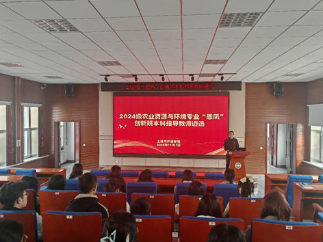 于土壤楼A座226报告厅召开了2024级农业资源与环境专业“恩凤”创新班本科指导教师遴选会。会议旨在通过师生双向选择,为创新班学子匹配最合适的“学业引路人”。会议由教学副院长杨劲峰教授主持,2024级农业资源与环境专业“恩凤”创新班全体同学及本专业教师参会。