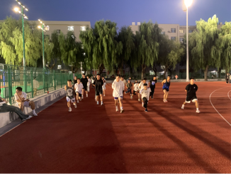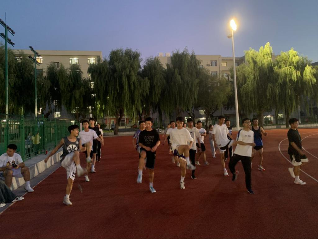 同学们在老操场上进行晚训