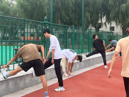 训练伊始,同学们在负责人的带领下进行热身,舒展筋骨,激活全身肌肉,为后续的训练做足准备,蓄势待发。