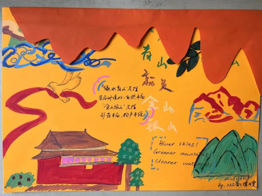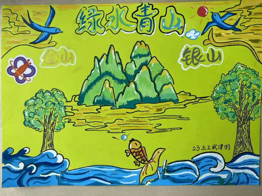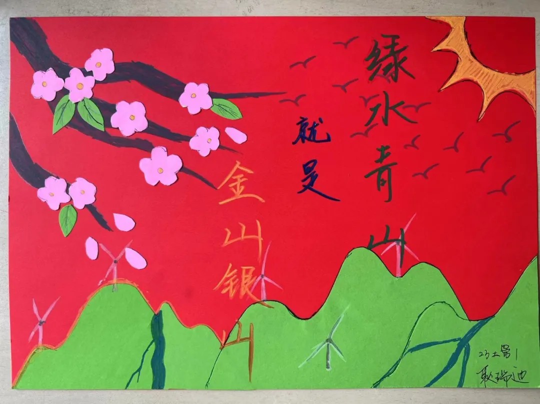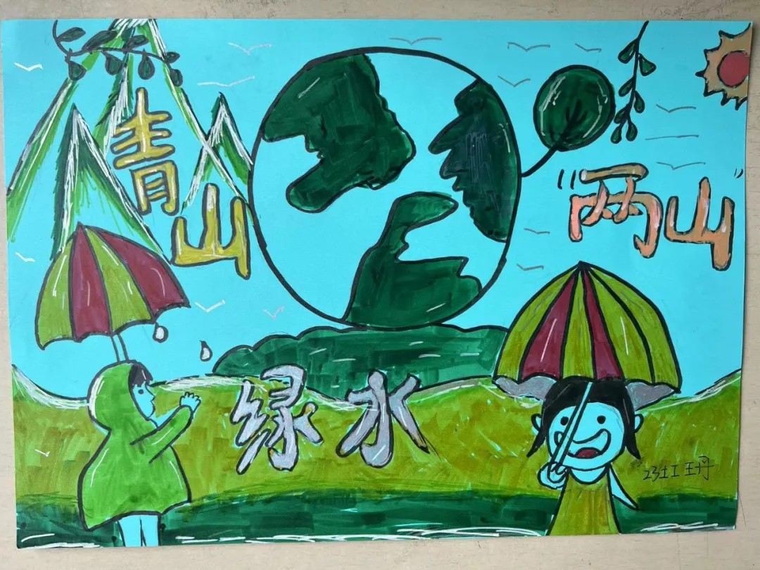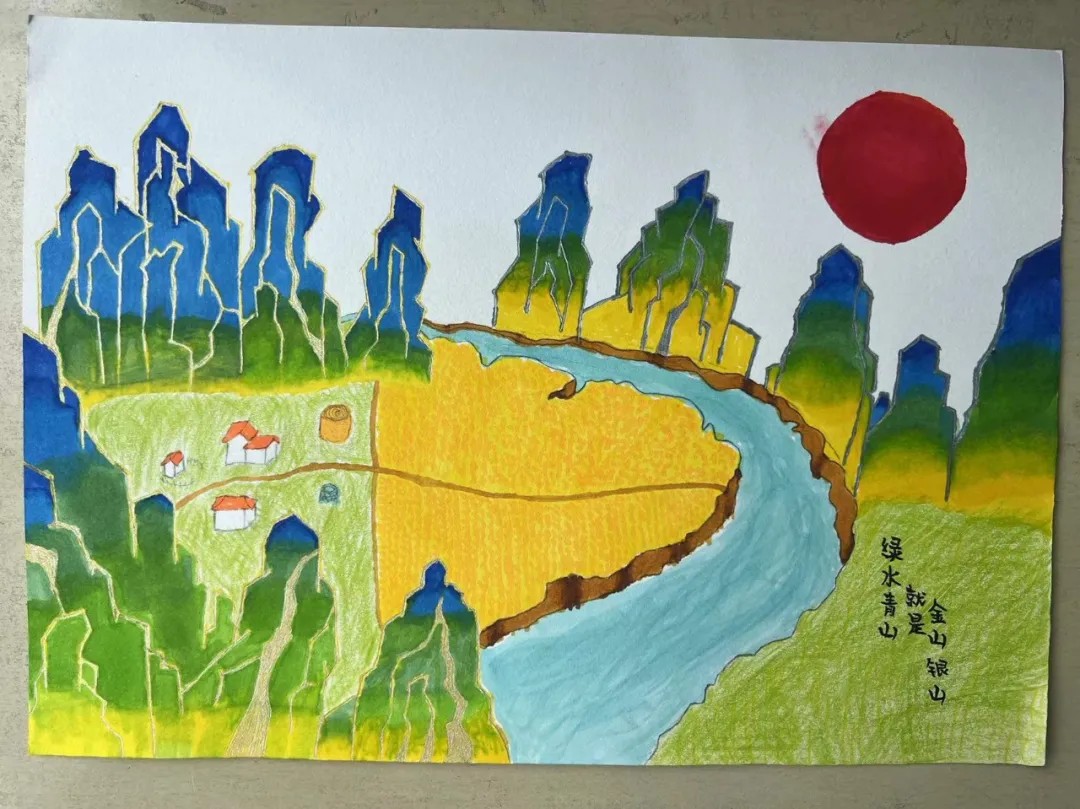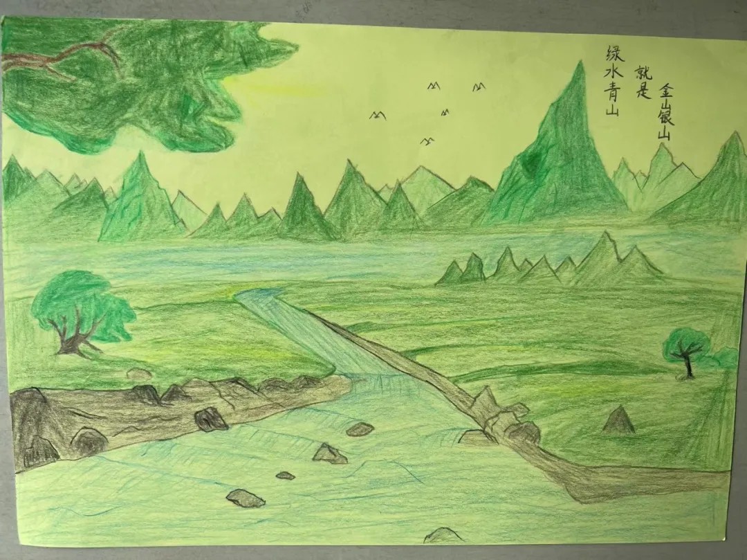 每一位参与者都以细腻的笔触、丰富的色彩,将“两山”的理念融入到自己的创作中。通过细腻的线条、鲜明的色彩来表现自然的美丽与和谐,也通过寓言故事、寓意画作来表达同学们对生态保护的关注与呼吁。让我们来一同欣赏一下这一幅幅美丽的画卷吧!