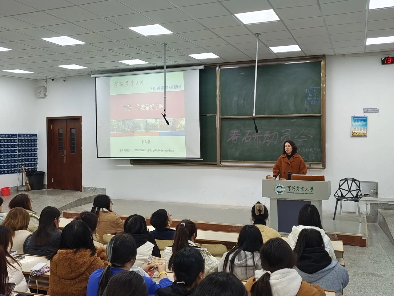 2022级全体本科生考研动员会在一教南106成功召开。学院党委副书记袁玲老师,副院长裴久渤副教授,辅导员葛新老师、文泊苏老师出席了此次会议。会议由院党委副书记袁玲老师主持。