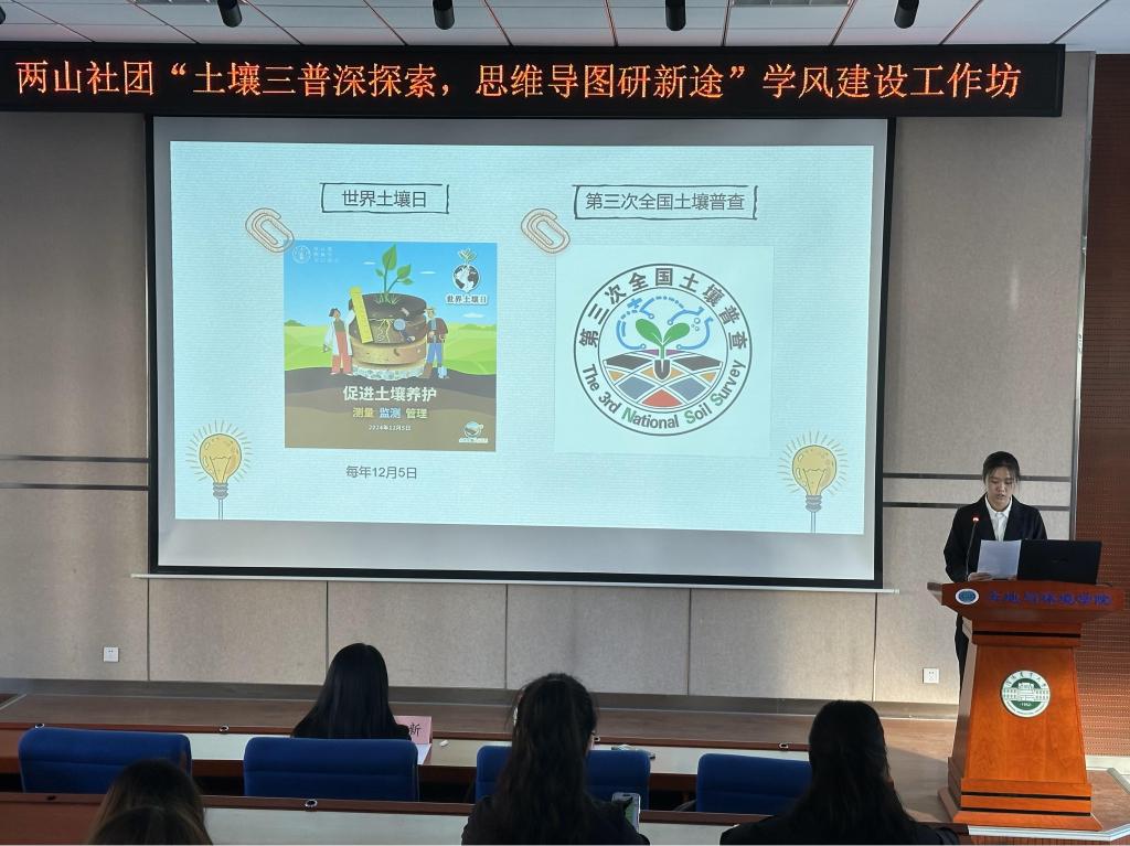 12月5日是世界土壤日,今年的主题是“爱护土壤:测量、监测与管理”。为了鼓励更多学生参与到保护土壤的行动中来,两山社团于12月4日在土壤楼A座226报告厅举办了“土壤三普深探索,思维导图研新途”学风建设工作坊,黄色直播