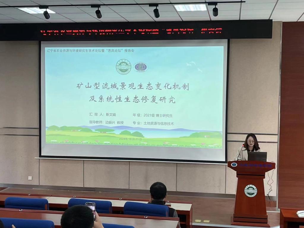 10月23日,第二期辽宁省农业资源与环境研究生学术论坛暨“恩凤论坛”报告会在土壤楼A座226报告厅成功举办。本次活动邀请了土壤地理与土地资源团队2021级博士生靳文娟进行了题目为“矿山型流域景观生态变化机制及系统性生态修复研究”的学术汇报,共一百余名研究生听取本次报告。副院长边振兴、裴久渤出席活动,学术报告由边振兴教授主持。